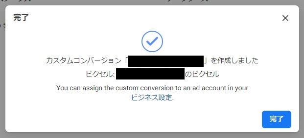 【完了】をクリックすると、カスタムコンバージョンの作成は完了です。