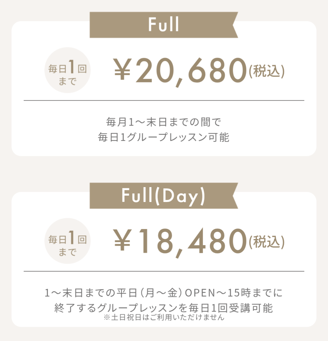 ・グループレッスンはすべてのコースで1日1回までのご利用が可能です。